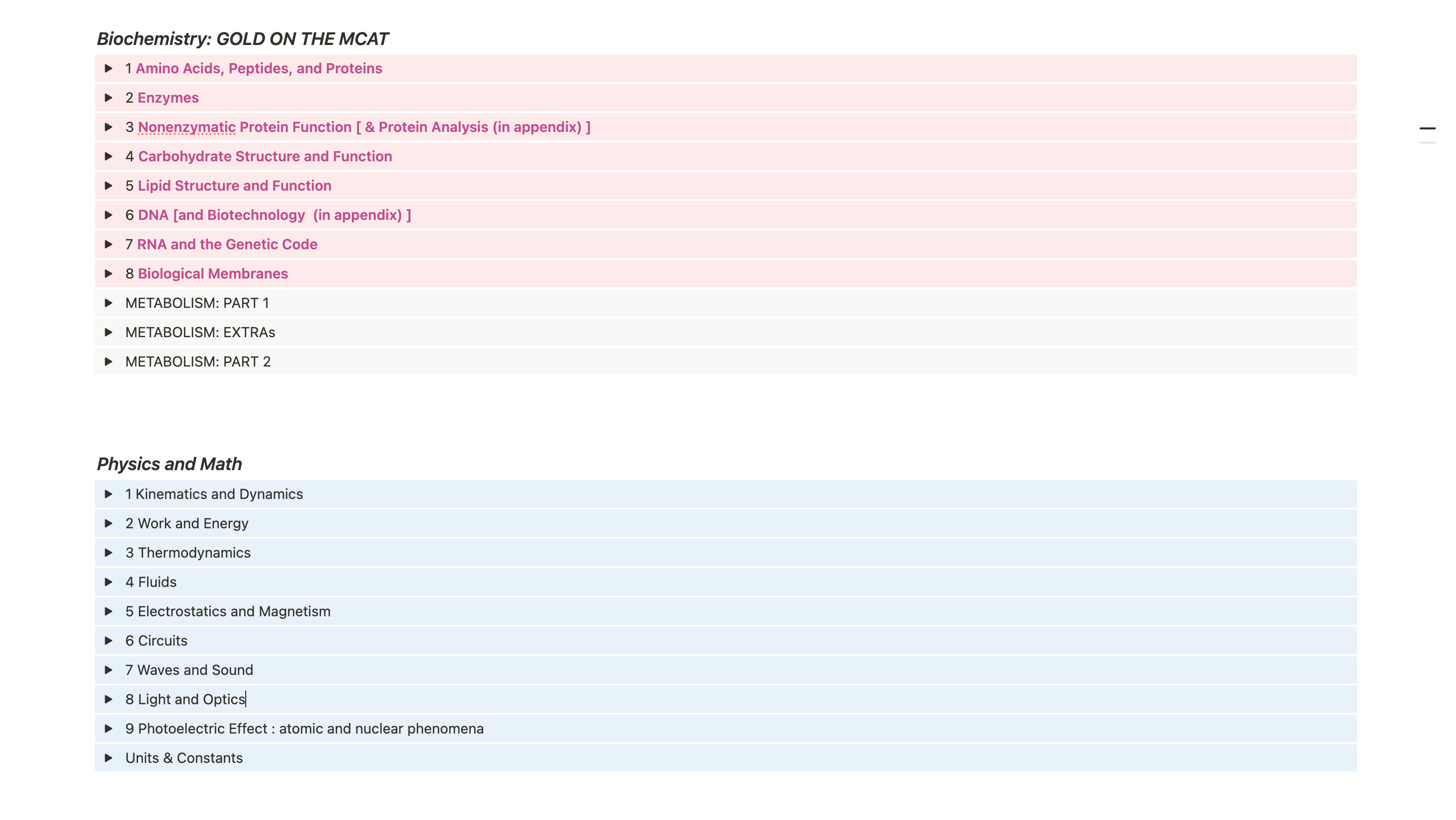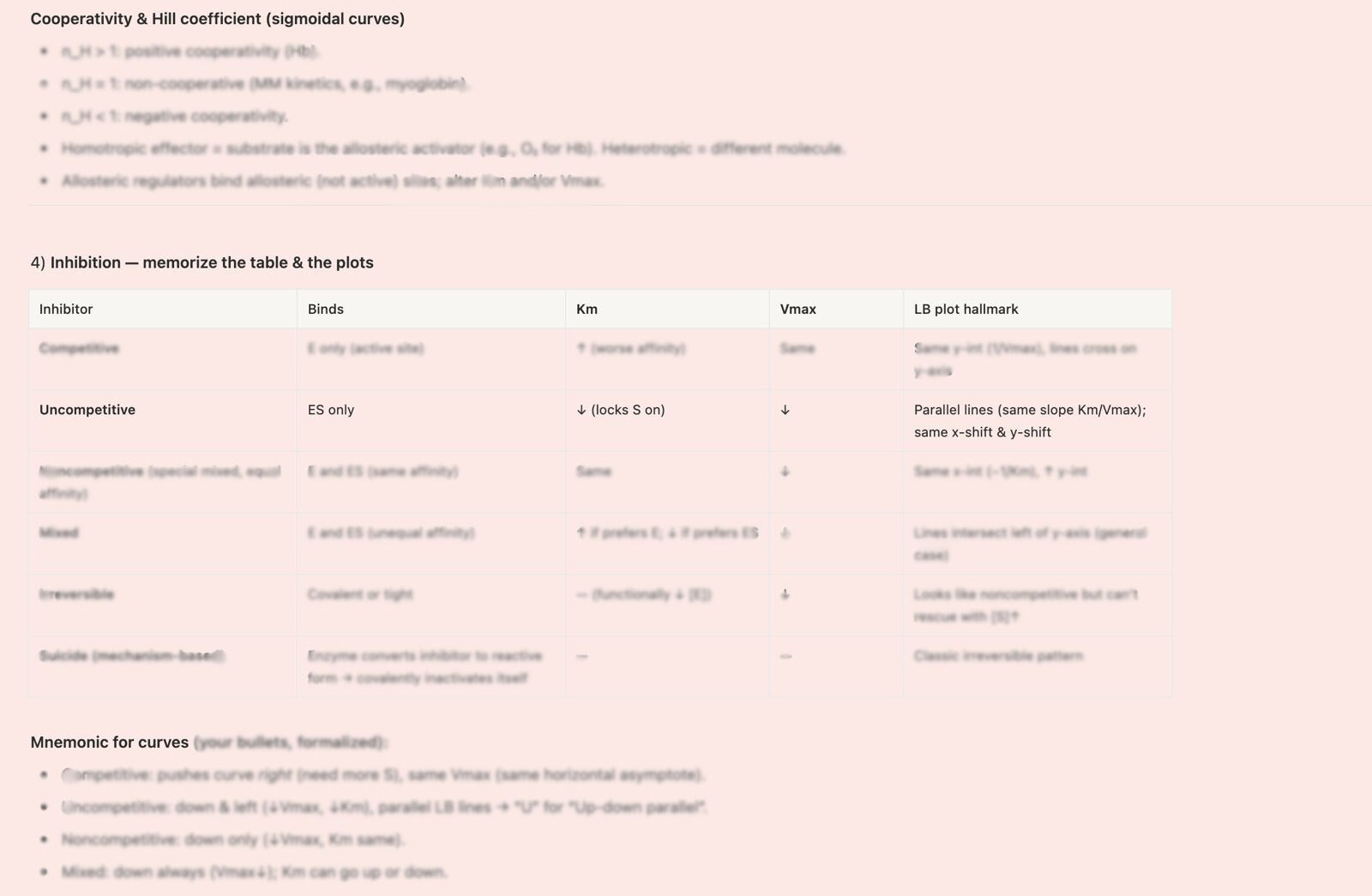 • Bio/Biochem: pathway maps with regulation & rate-limiting steps, enzyme kinetics (Km/Vmax; inhibition types), membranes/transport, genetics.