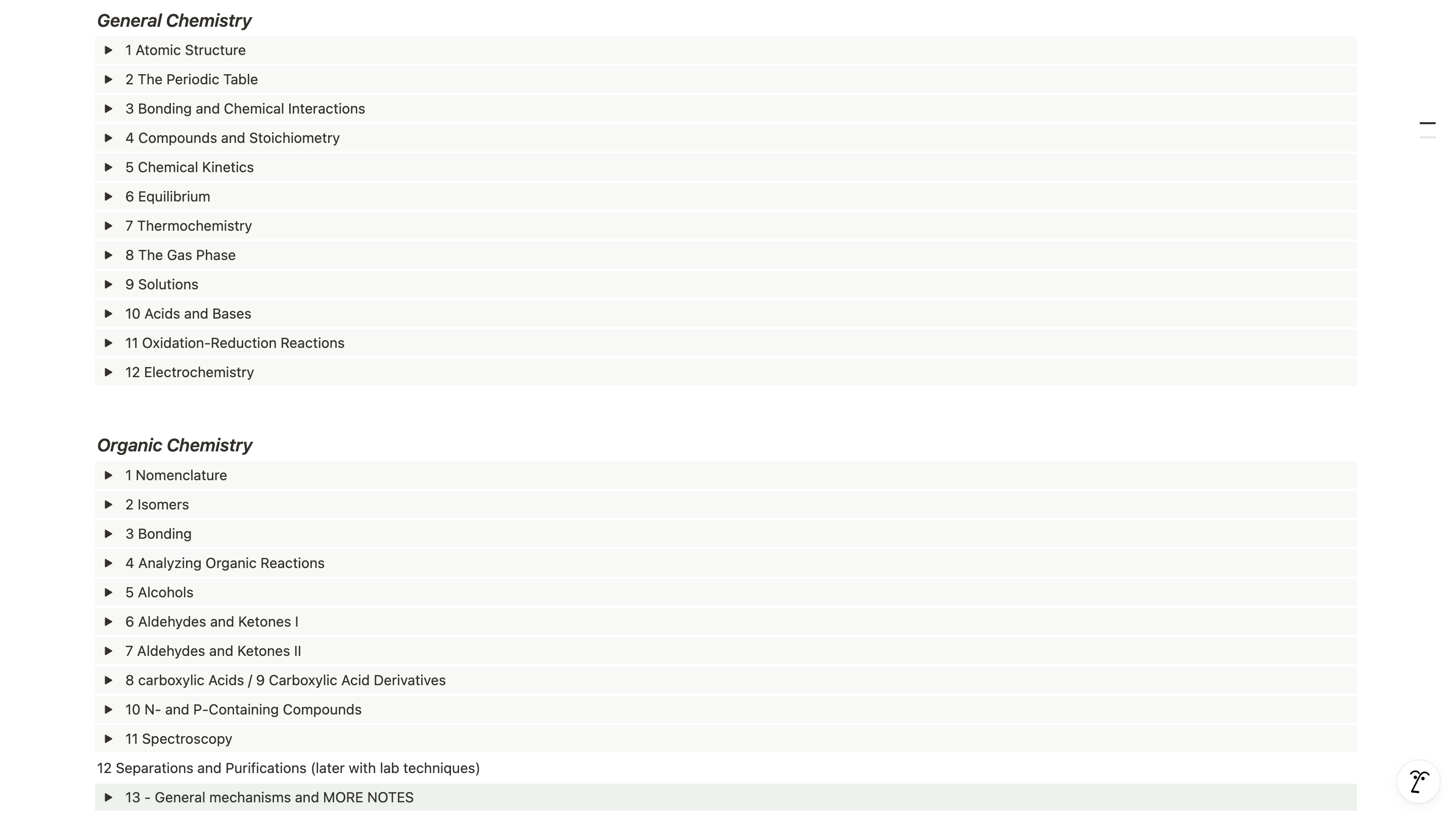 • Gen Chem: buffers/titrations, equilibrium vs. kinetics, thermochem, electrochemistry.
